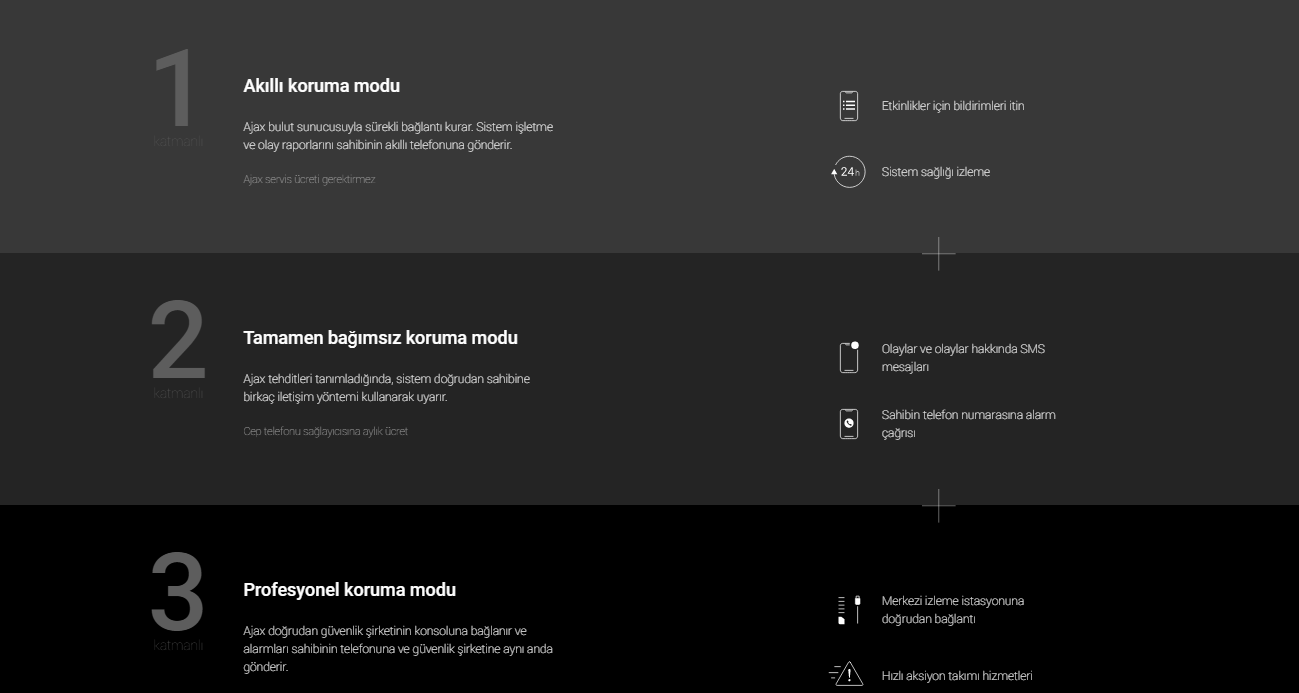 Ajax, akıllı, güvenilir ve yıldırım hızlı. Yanlış alarmlara değil, yalnızca gerçek tehlikelere tepki verir. Bir şey olursa, Ajax sizi bir kalp atışında bilgilendirecek ve büyük sıkıntıları önleyecektir.